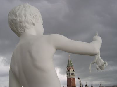J'aime bien cette photo, le ciel gris, plombé, si on n'apercevait pas le campanile, on pourrait être ailleurs ! allez "petit", lâches-la, ta grenouille, fais lui découvrir l'eau de Venise...