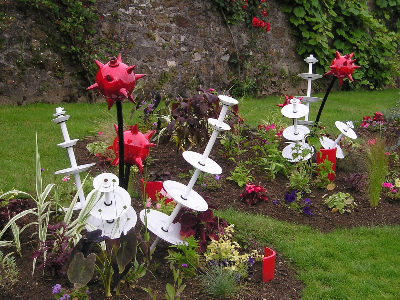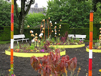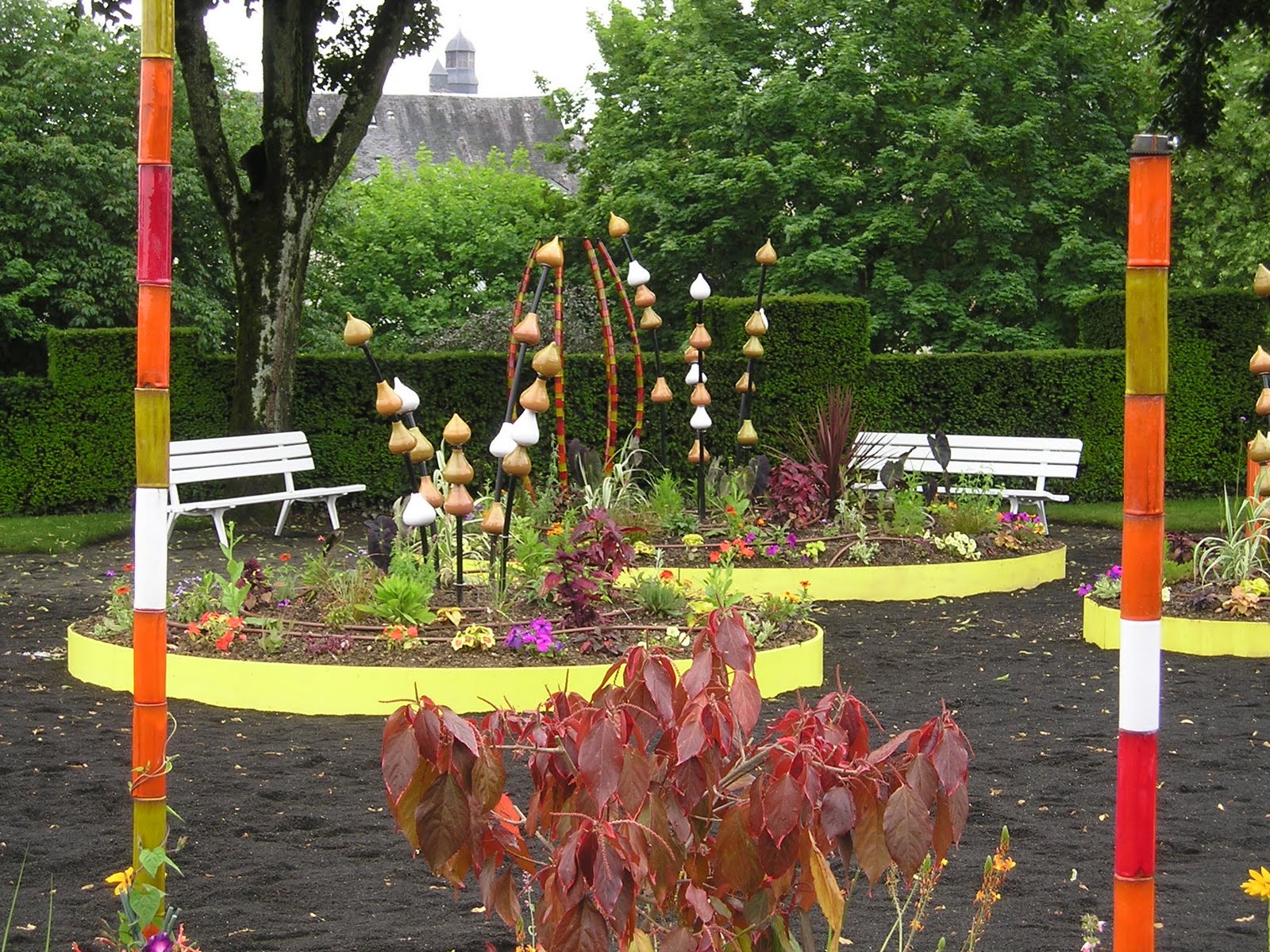 J'aimerais bien avoir les petits "tuteurs" de la première vue dans mon jardin...on réalise maintenant des mises en scène dans les espaces verts, jusqu'à mélanger des légumes aux fleurs.