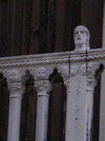 Linda, cette tête a été sculptée sur un balcon. D'habitude, à Venise, ce sont plutôt des lions qu'on aperçoit. Martine de Sclos, sur son blog "Per l'Amore di Venessia", présente d'autres photos du même endroit.