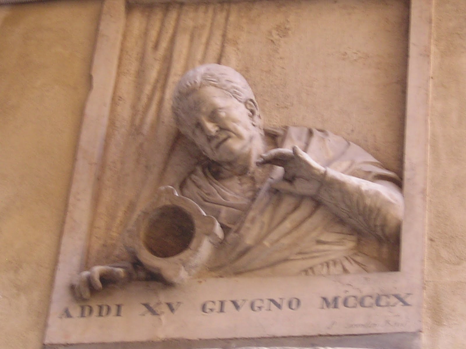 La vieille femme dont vous voyez le portrait sculpté avait observé la scène et elle décida d'intervenir en laissant tomber du haut de son balcon un mortier qui frappa Bajamonte Tiepolo et le tua net.