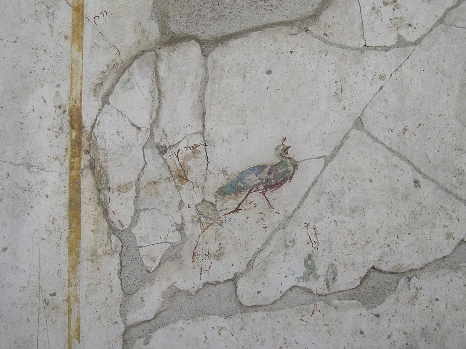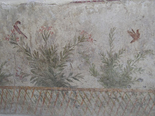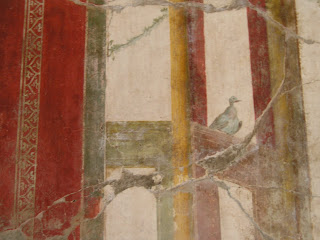 What a wonderful visit to Oplontis, Campania you had!! I have been reading your Oplontis posts and found them so fascinating. Two years ago I watched a "Discovery" program about Oplontis on TV. Since then, I've wanted to see the relics of Oplontis again and to learn more about the city. Your posts are a real treat! The birds on the red walls are really lovely! And the peacock too! I've been to Pompeii once and found it fabulous! I saw some interesting Roman baths, shops(bakeries? ), the remains of Fresco, and so on and so forth.