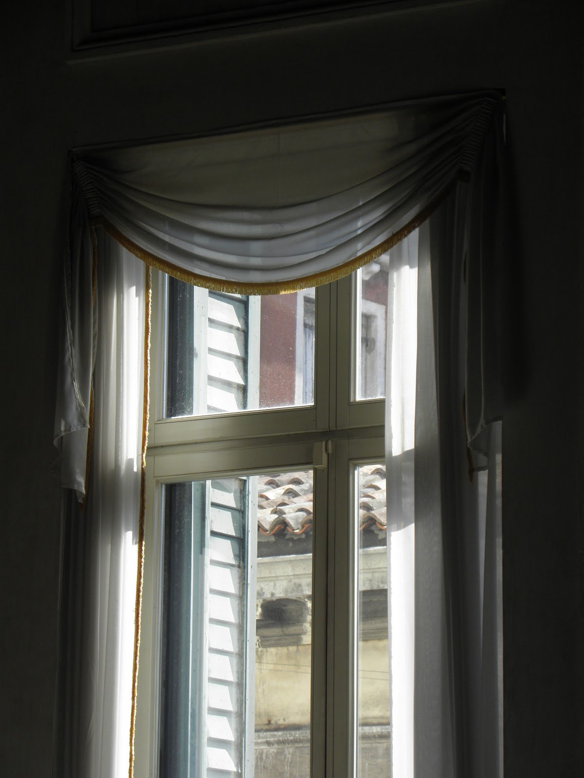 Ah, les rideaux vénitiens...un souvenir d'il y a quelques années...nous déambulons de calle en calle et soudain me voilà, à l'arrêt devant une vitrine et en admiration devant..des rideaux...juste ce qui me plaît, juste ce dont j'aurai envie quand il me faudra remplacer les miens( enfin ceux de ma maison) ce qui ne saurait tarder :-) seulement je n'ai pas les mesures de mes fenêtres...je dois donc renoncer..je note l'endroit...l'année suivante, j'avais pris mes précautions mais , hélas, je n'ai jamais retrouvé la petite vitrine......et je n'ai pas encore changé mes rideaux...