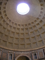 Je me souviens ma première visite à Rome, nous avions un concert à Viterbo et une escale au retour d'une demi-journée, au mois d'aout. Les talons s'enfonçaient dans l'asphalte tellement la chaleur était dense, le groupe ne voulant pas voir le Colisé, nous avions décidé de nous diriger sans véritable plan vers Saint Pierre de Rome et en marchant, accablés par le soleil nous sommes arrivés à ce havre de fraicheur ambiante qu'est la coupole du Panthéon, sans savoir exactement où nous étions.