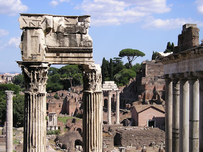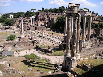 j'ai visité le forum une première fois avec Marine qui devait avoir 9 ans, cherchant la trace les lieux mythiques avec un guide, il faisait très bon, avril, et d'être entourée par toutes ces couches d'histoire était surréaliste, je me souviens qu'il y avait un petit rosier jaune à côté d'un bout de mur, quelques touristes, la proximité du Colisé, bref un excellent souvenir.