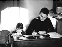 C'est magnifique Anne, merci beaucoup. Oh la jolie petite fille studieuse (déjà ?) à côté de son papa ! Et les vêtements de votre maman, ainsi que sa coiffure, ont le charme infini de ces années-là. Merci d'être entrée dans la ronde !