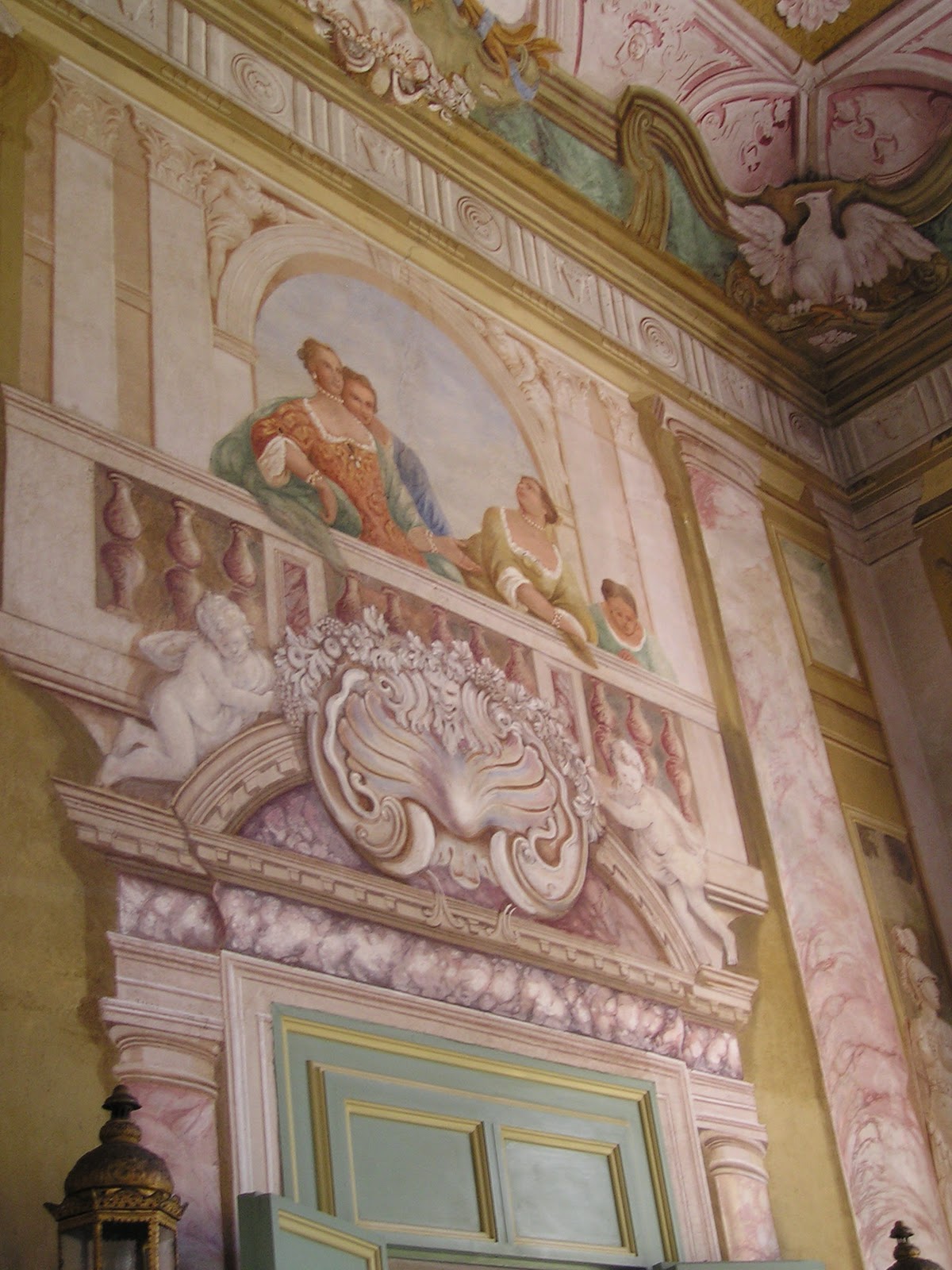 Il me semble que c'est à la Valmarana qu'on avait photographié Mandarine, à côté de la petite fille qui passe son nez dans un porte (fresque)... Alter dit que ce n'est pas là, mais comme le nom de la villa en question lui échappe ! Bref, de si beaux souvenirs, même s'ils demandent à être un peu rafraichis